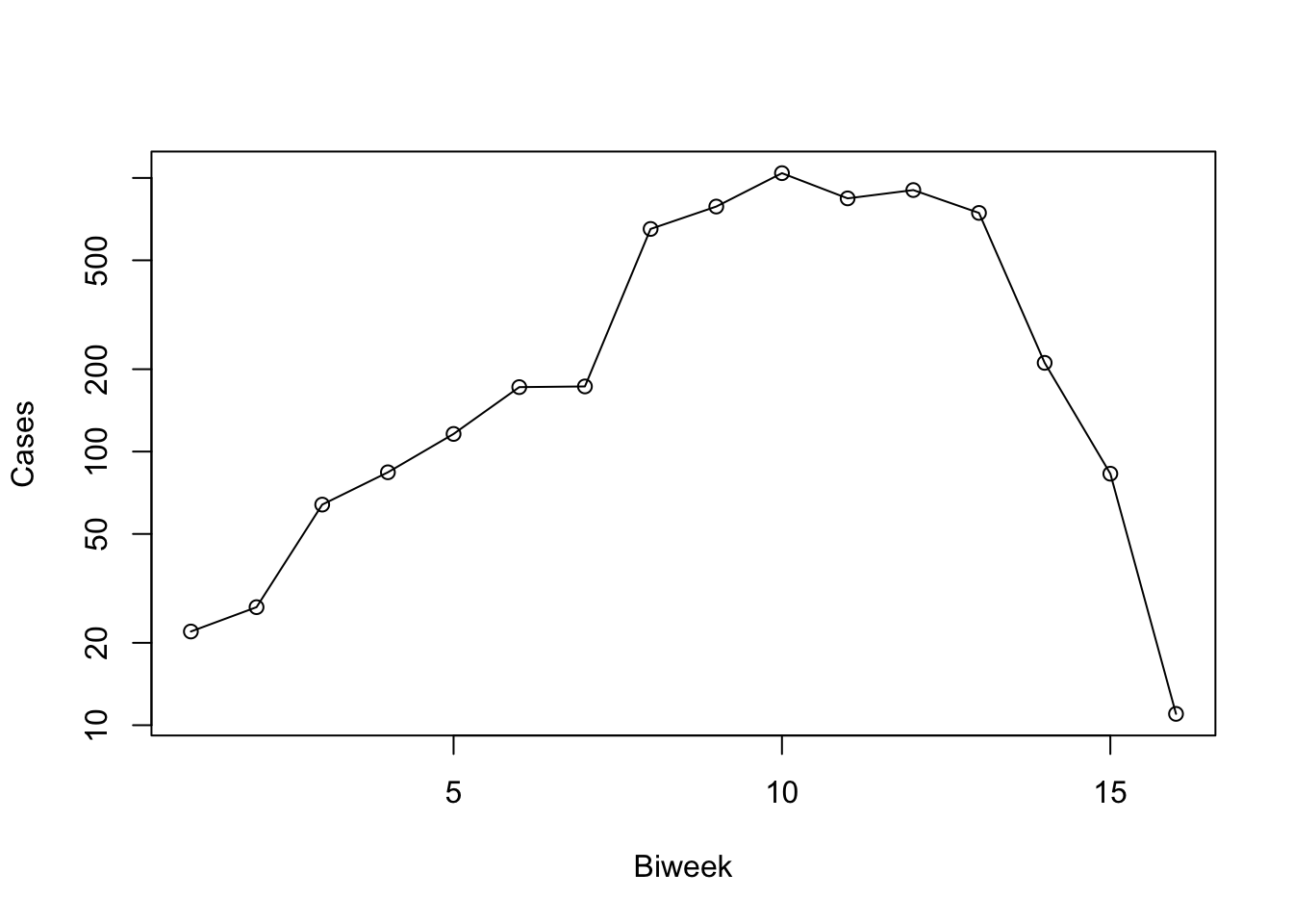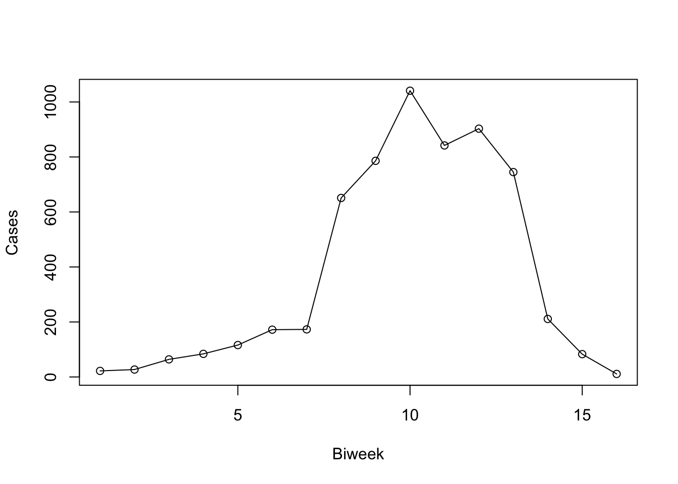 cases=c(niamey[,1],niamey[,2],niamey[,3])) #define "biweeks"